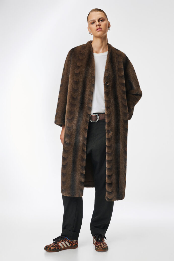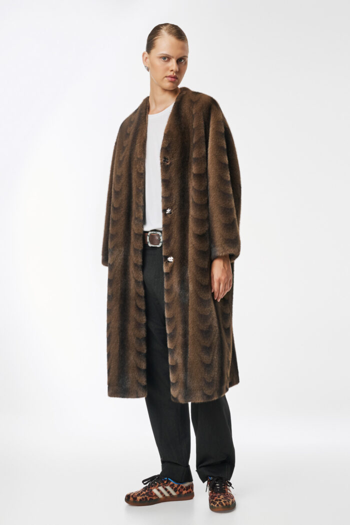Προσθέστε την τέλεια πολυτελή πινελιά σε κάθε σας εμφάνιση με αυτό το εκπληκτικό παλτό από συνθετική γούνα, που διαθέτει μια κλασική μακριά σιλουέτα και καθορισμένες ραφές σε όλη την έκταση, για να δίνει την αίσθηση της πραγματικής γούνας.