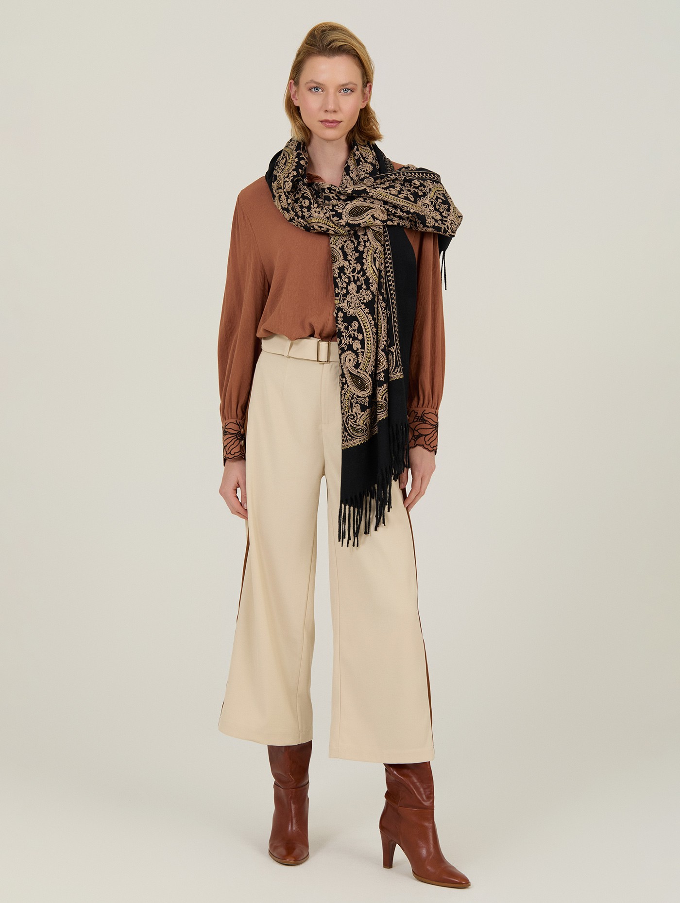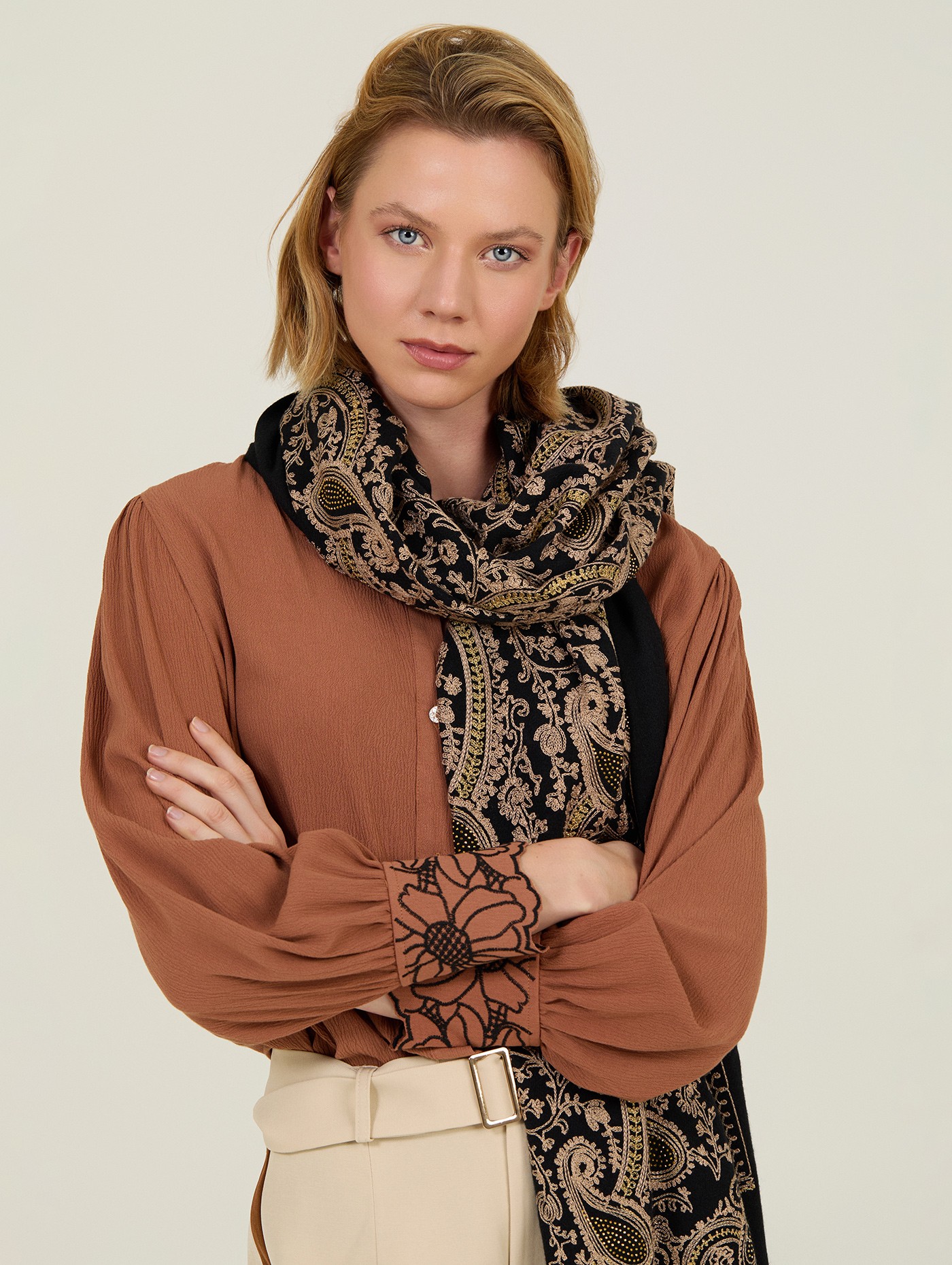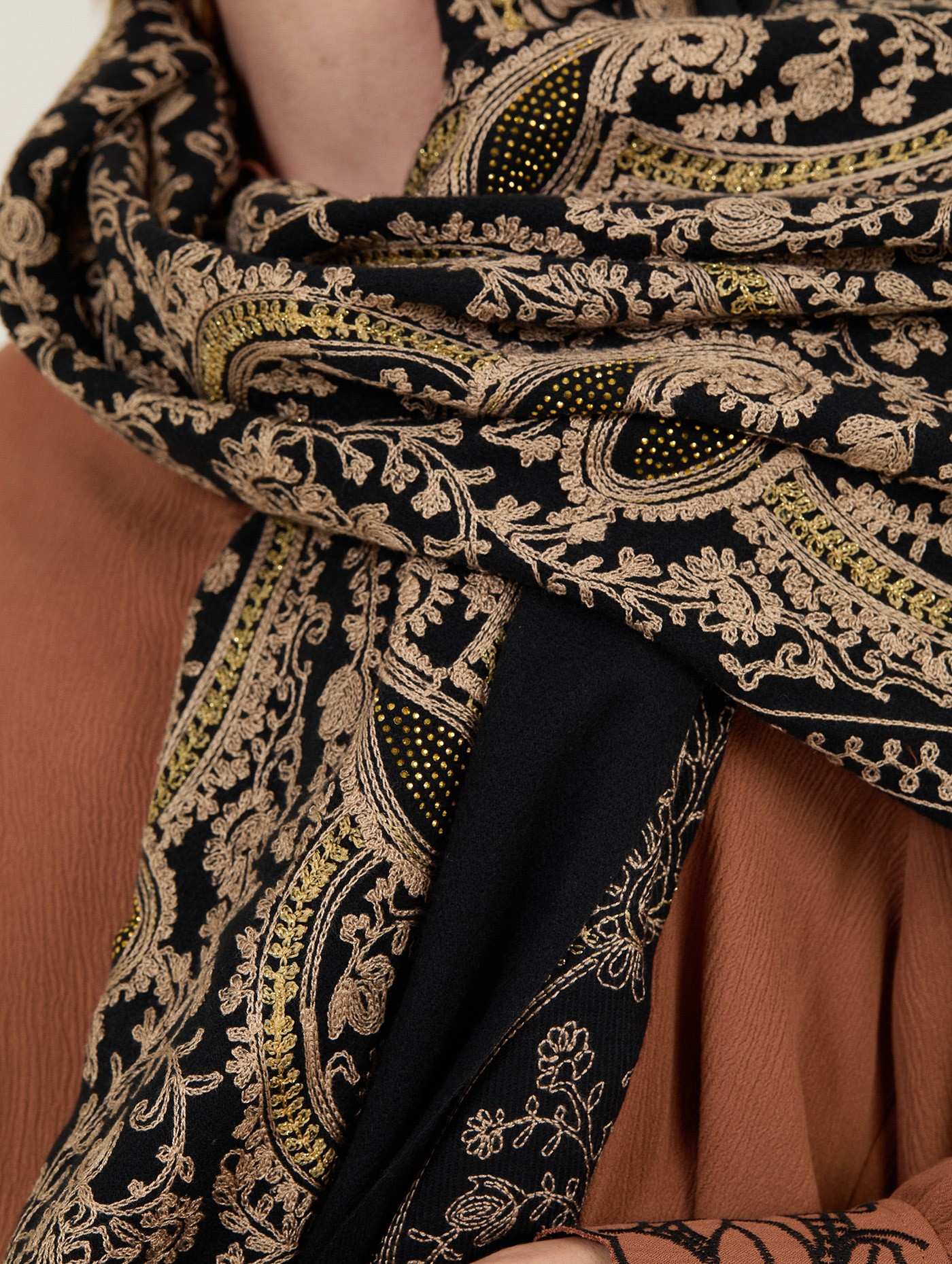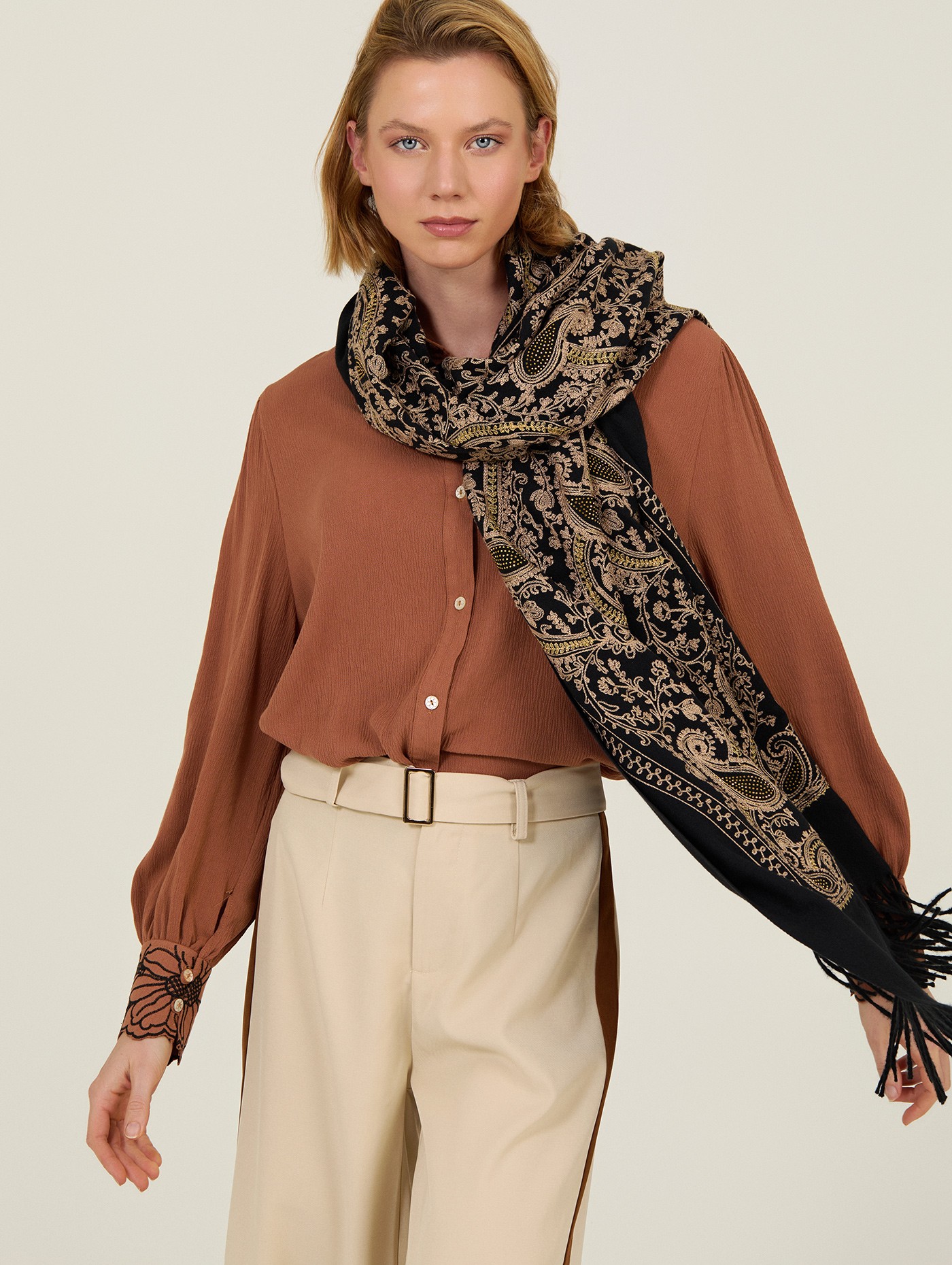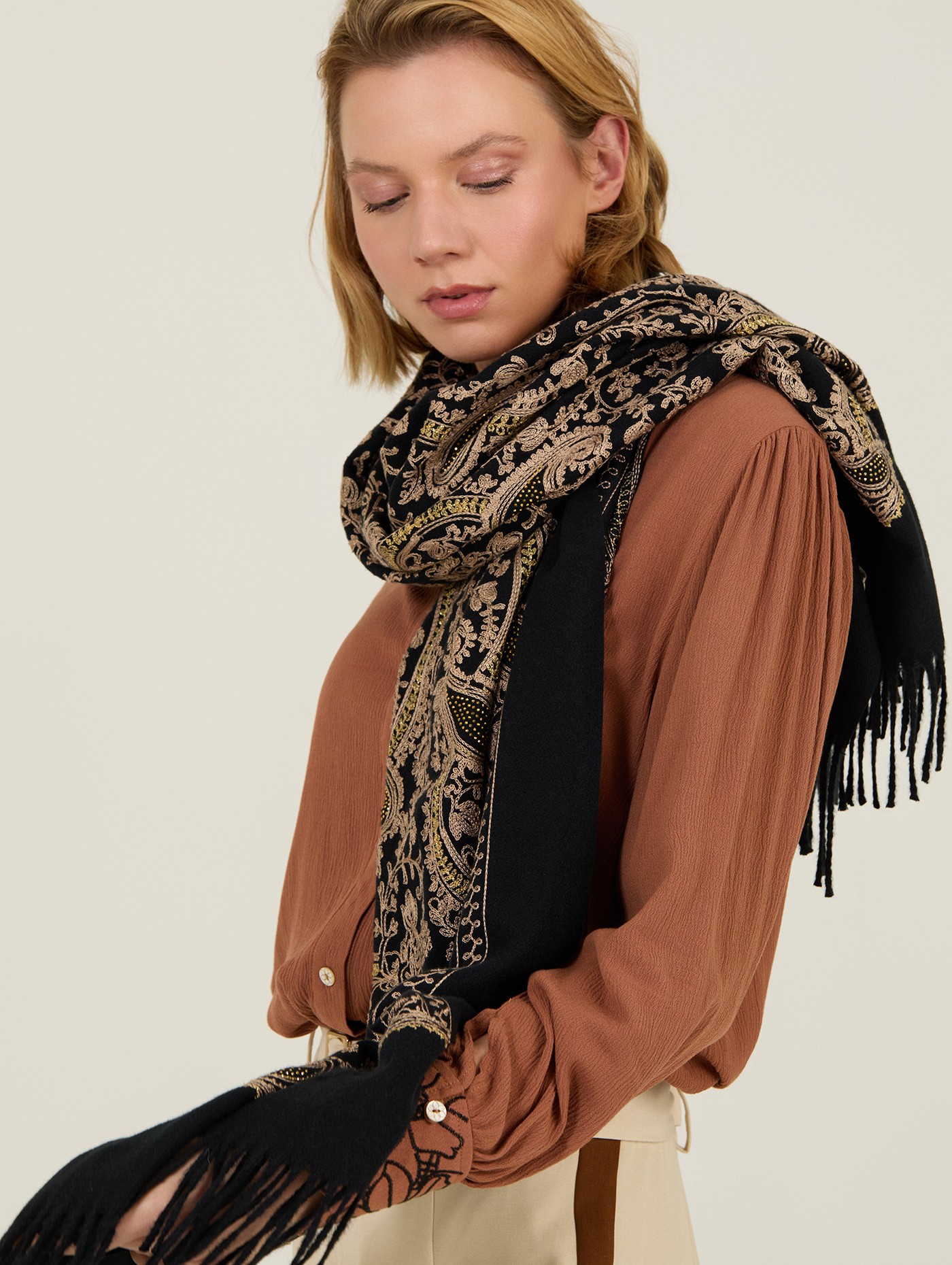 Κεντημένη Πασμίνα με paisley Μαύρη Meisie