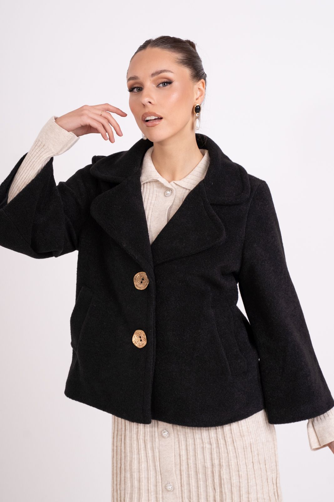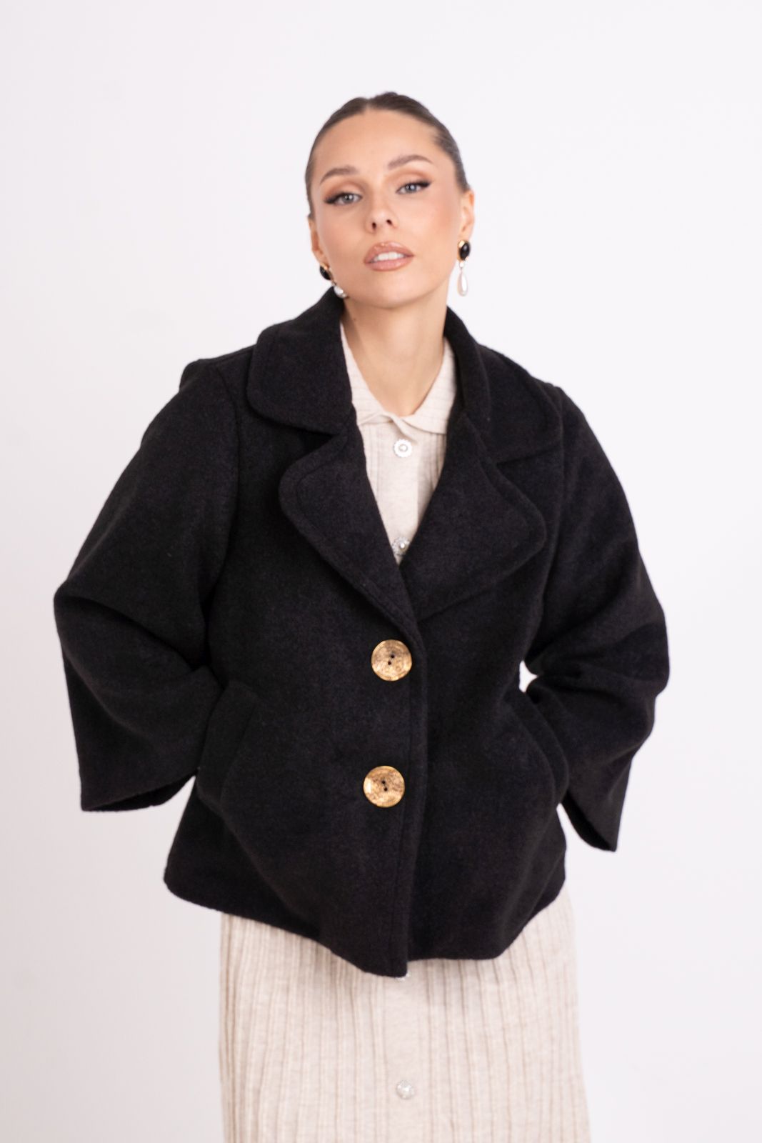 Κοντό παλτό με γιακά και κλείσιμο με δύο κουμπιά.