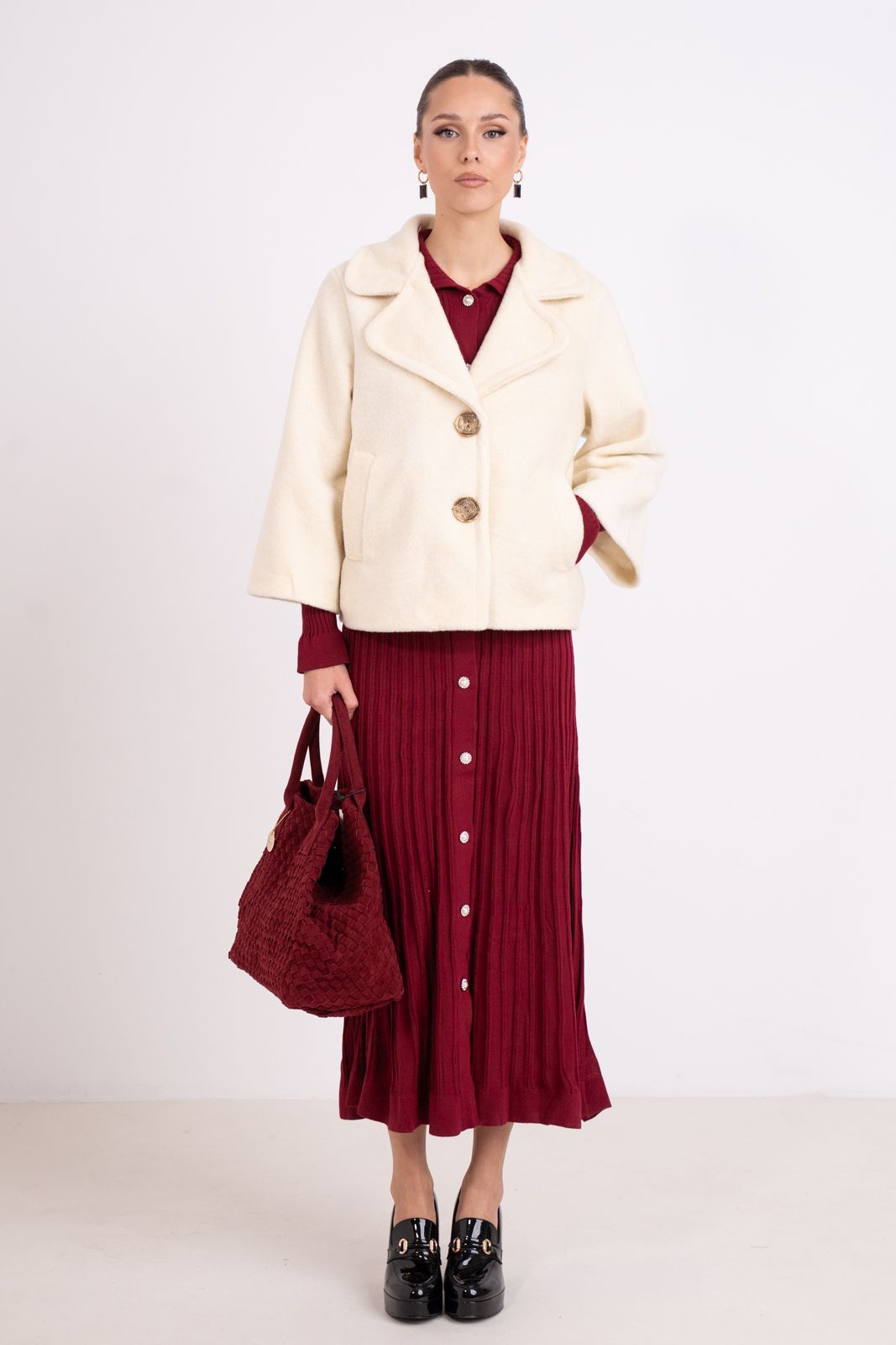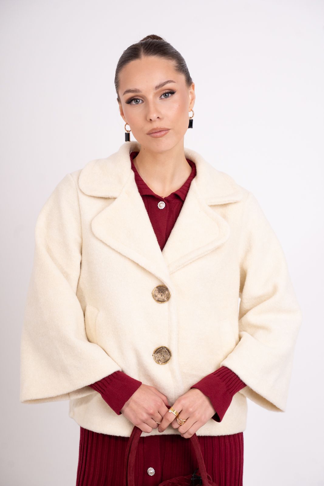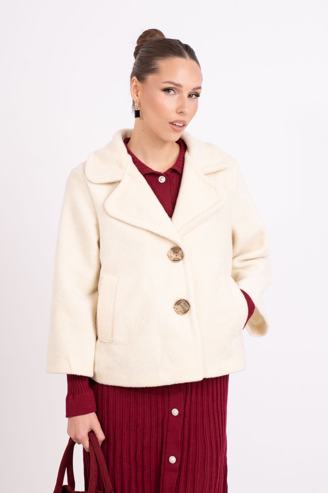 Κοντό παλτό με γιακά και κλείσιμο με δύο κουμπιά.