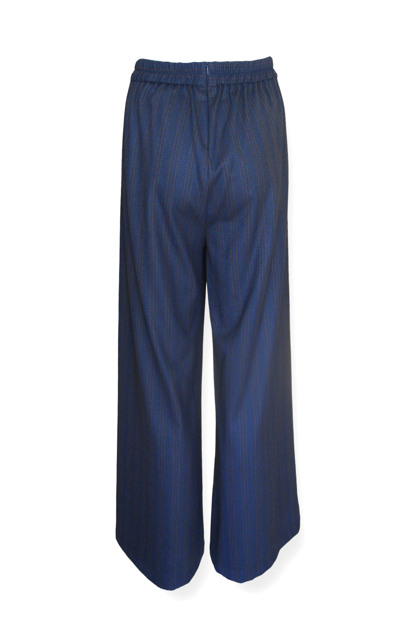Παντελόνι με κάθετη ρίγα και καλεσσικό κλείσιμο με φερμουάρ και κουμπί.