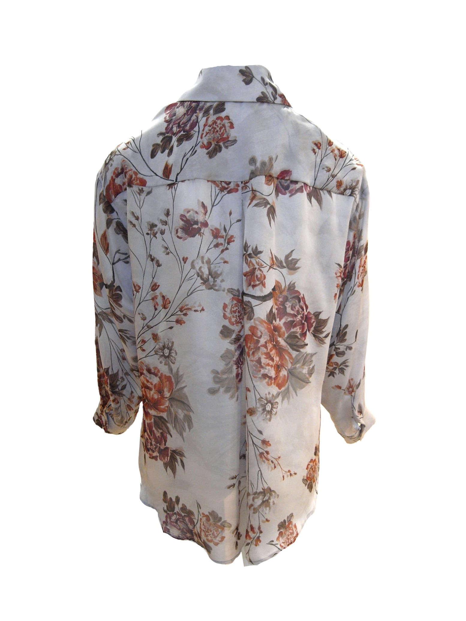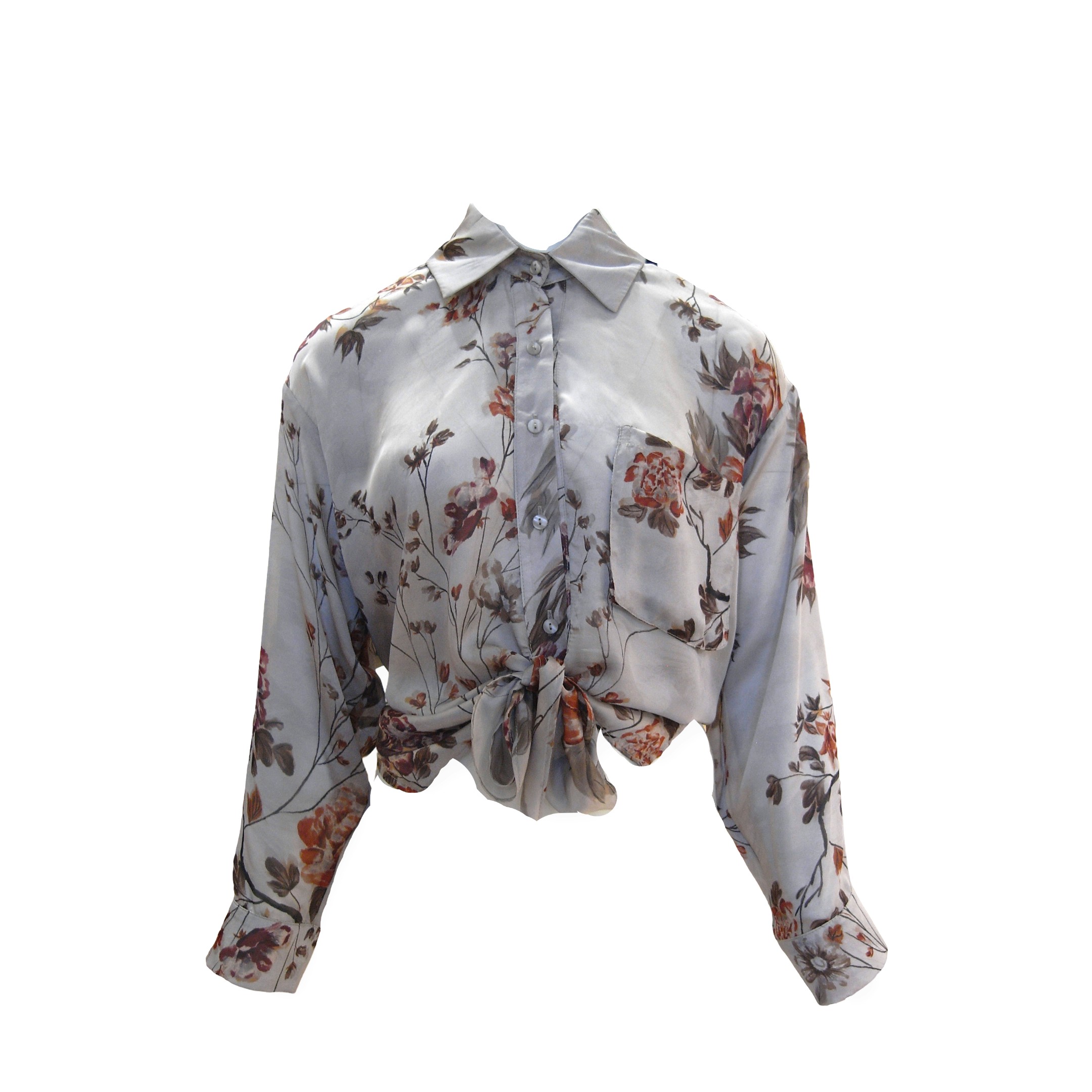 Πουκάμισο ημιδιαφανές με floral print. Κλείσιμο με κουμπιά και δέσιμο στο μπροστινό μέρος.