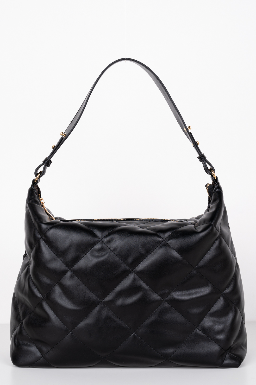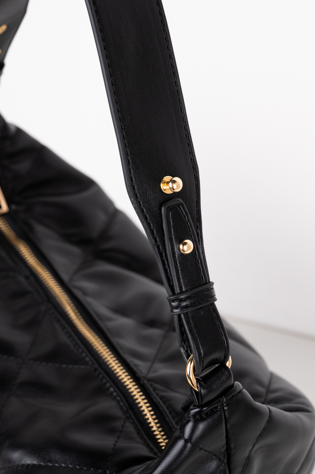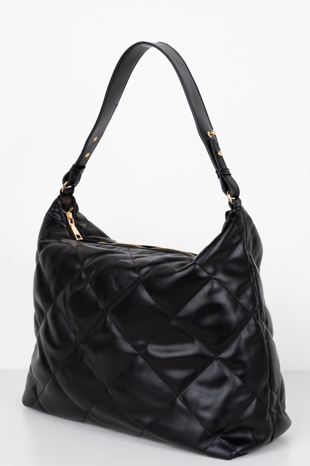Τσάντα ώμου με χερούλι και αποσπώμενο ιμάντα για χιαστί εφαρμογή. Σχέδιο με εξωτερικά γαζιά. Ενιαίος αποθηκευτικός χώρος. Κλείνει με φερμουάρ. Σύνθεση : 100% PU. ΠΧΒΧΥ : 42X13X29.