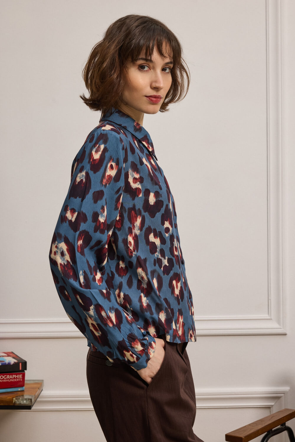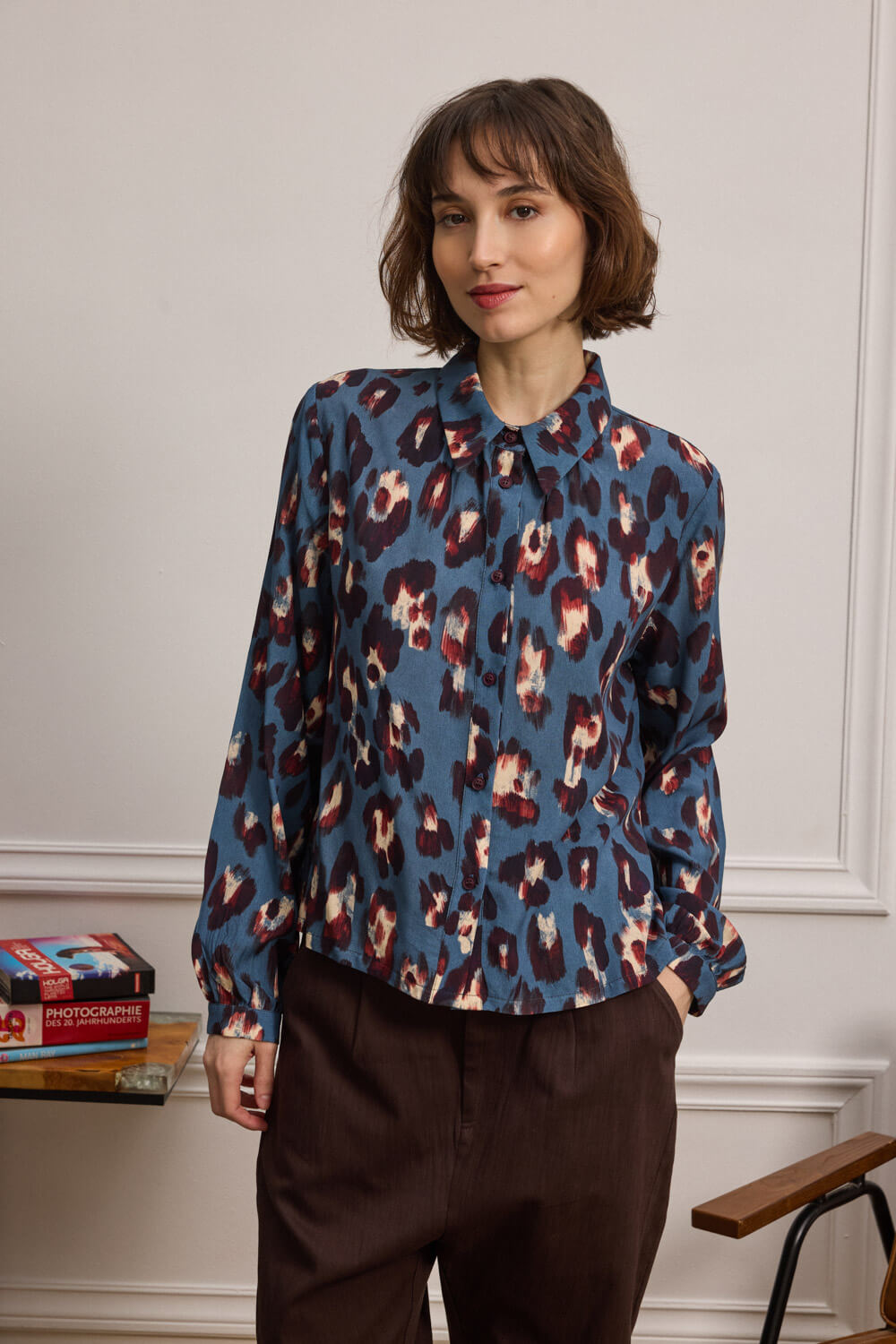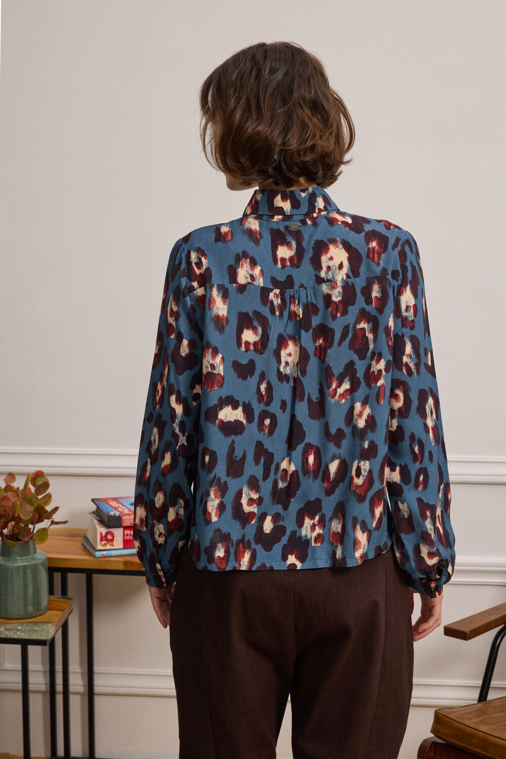 Πουκάμισο με έντονο animal print που ξεχωρίζει για την απαλή υφή και το 100% viscose ύφασμά του.