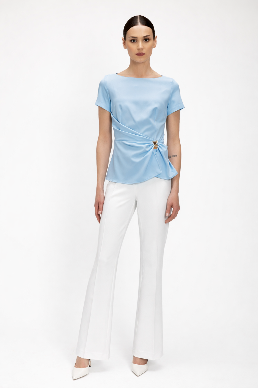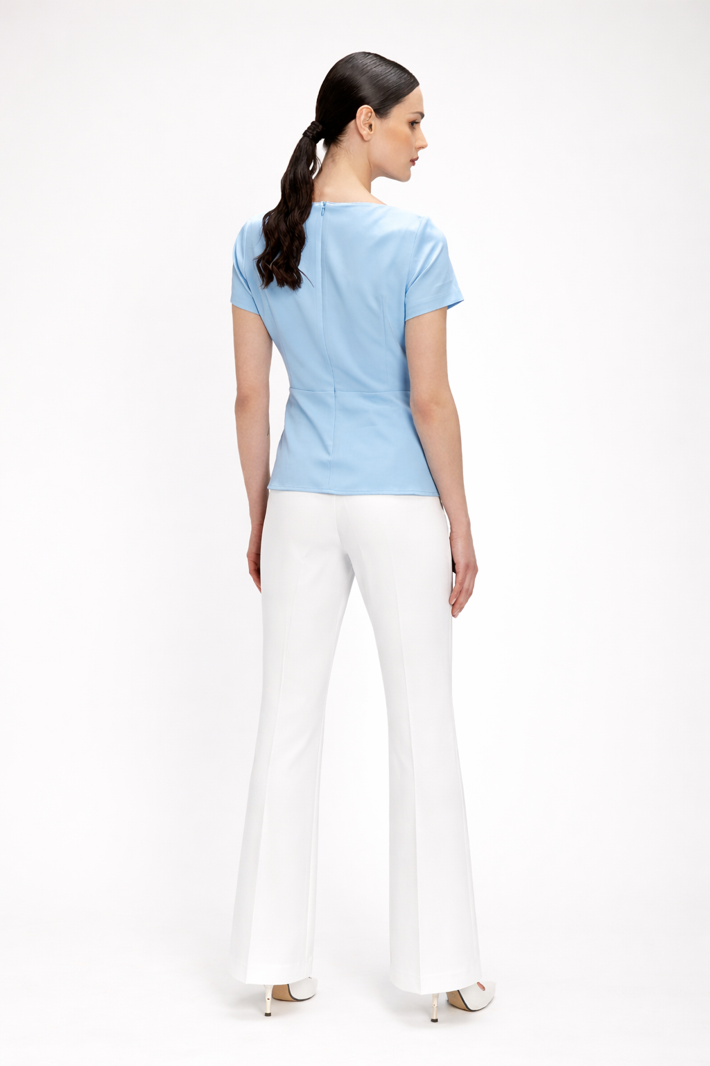 Παντελόνι σε κρεπ ελαστικό με ελαφριά καμπάνα.