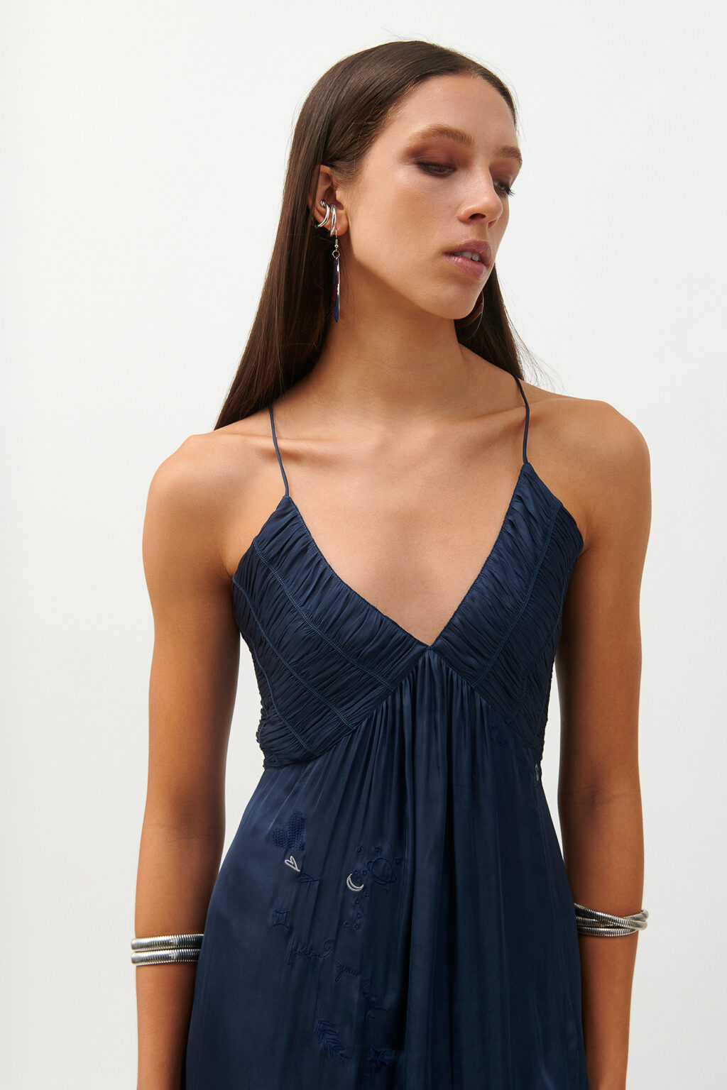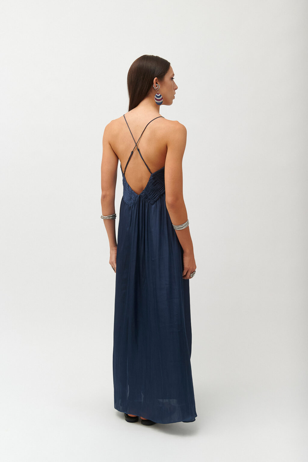 Μακρύ, σατινέ φόρεμα σε navy απόχρωση από την Cloud 9 By L