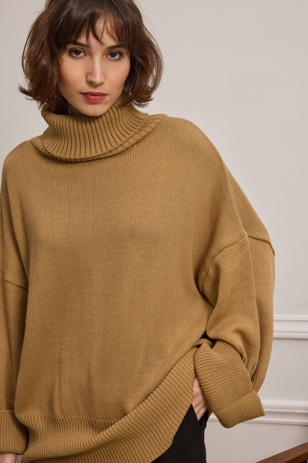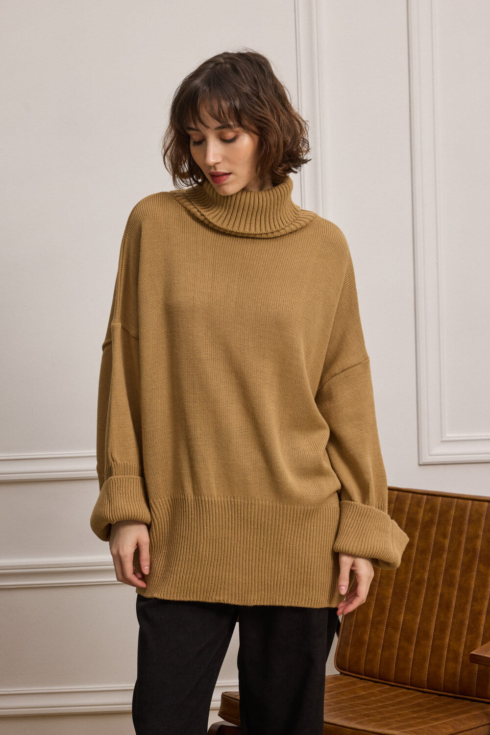 Η φαρδιά ριμπ πλέξη στο τελείωμα και στα μανίκια δίνει βάθος, προσφέροντας κομψότητα μέσα από την απλότητα.