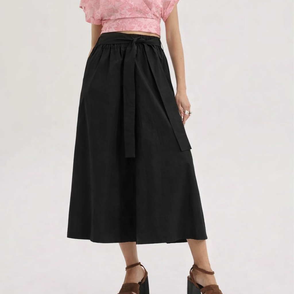 Ψηλόμεσο παντελόνι από βαμβακερό, σταθερό ύφασμα με ζώνη και λάστιχο περιμετρικά της μέσης.