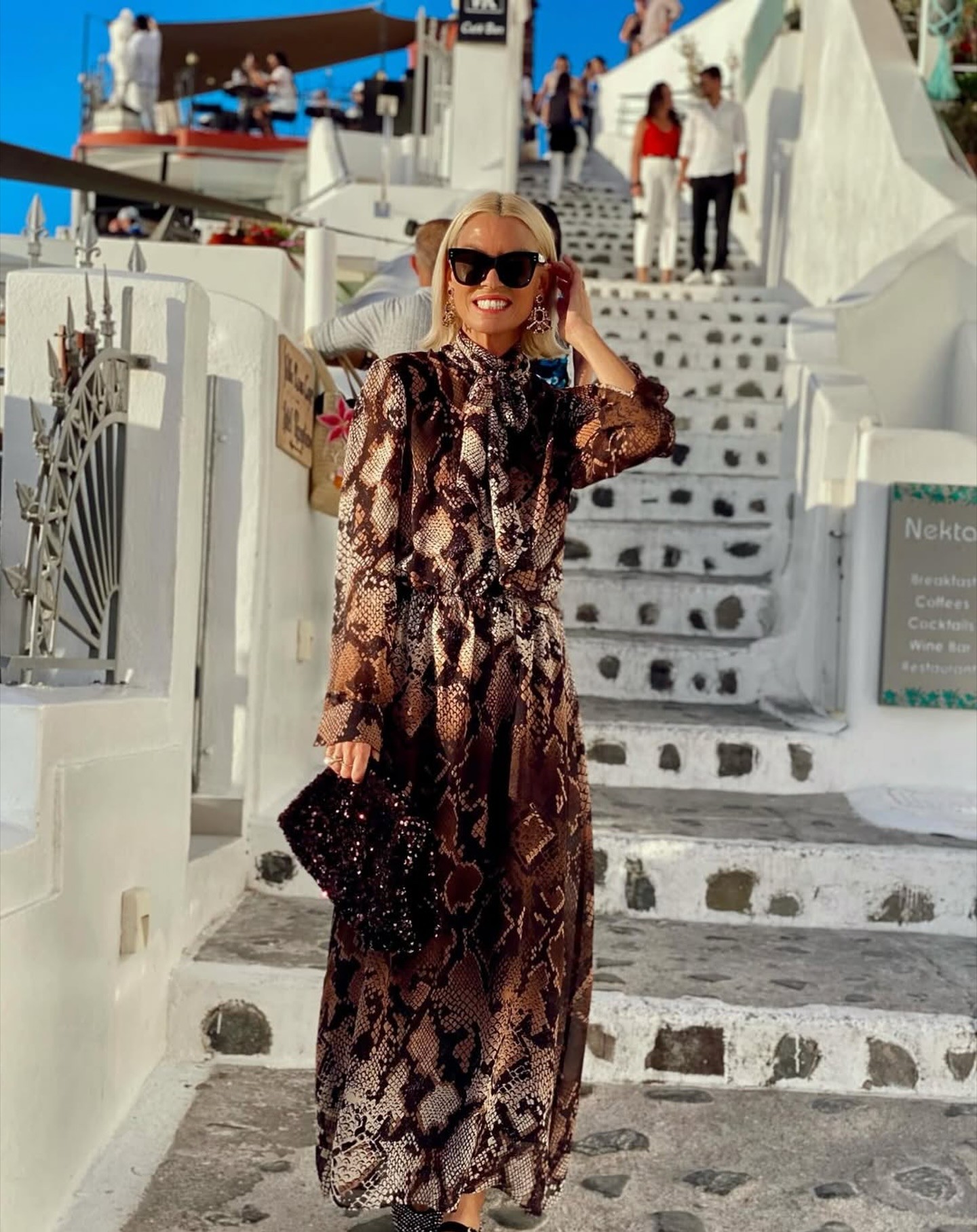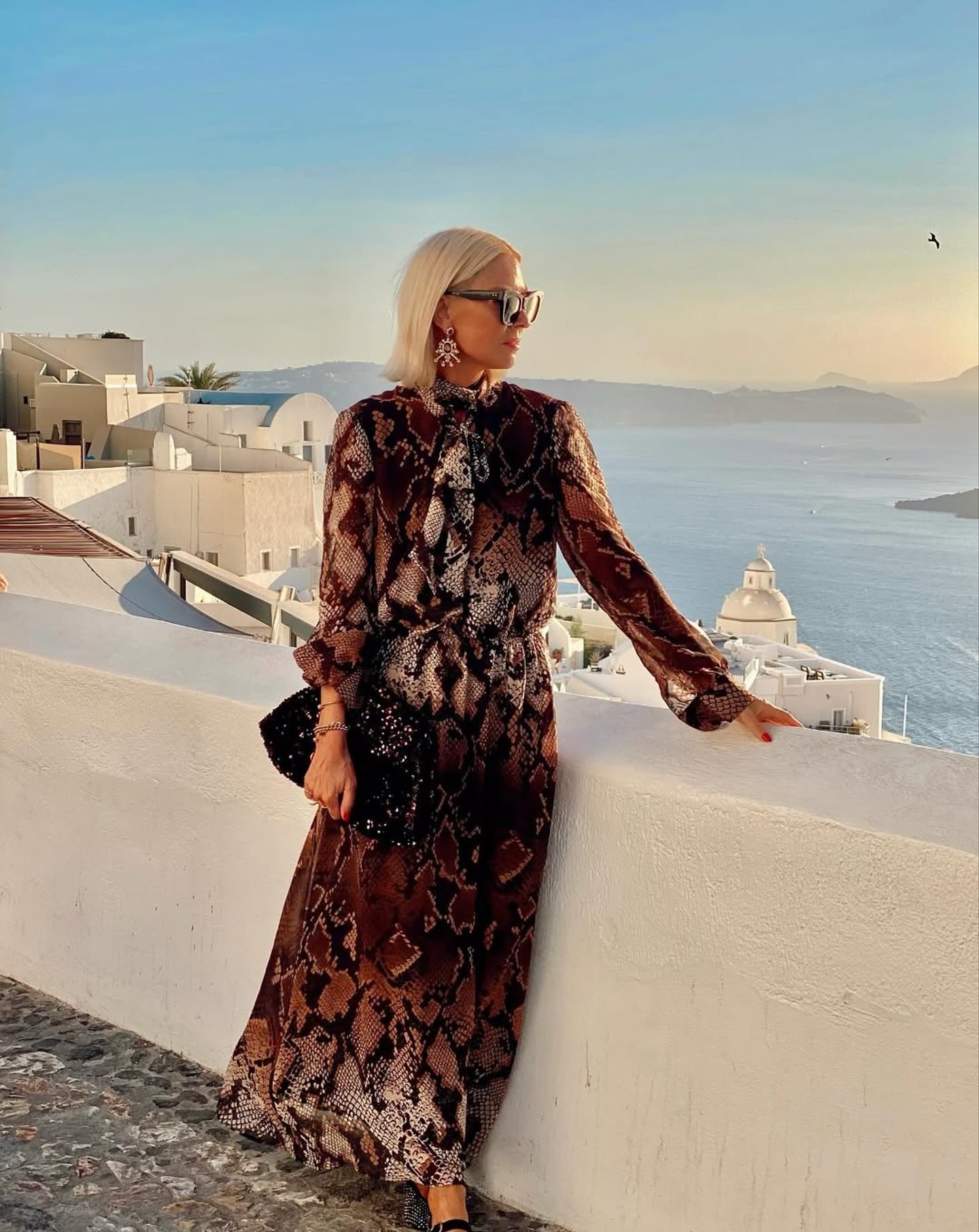 Maxi φόρεμα με γραβάτα. Λάστιχο περιμετρικά της μέσης και μακριά μανίκια με μανσέτες.
