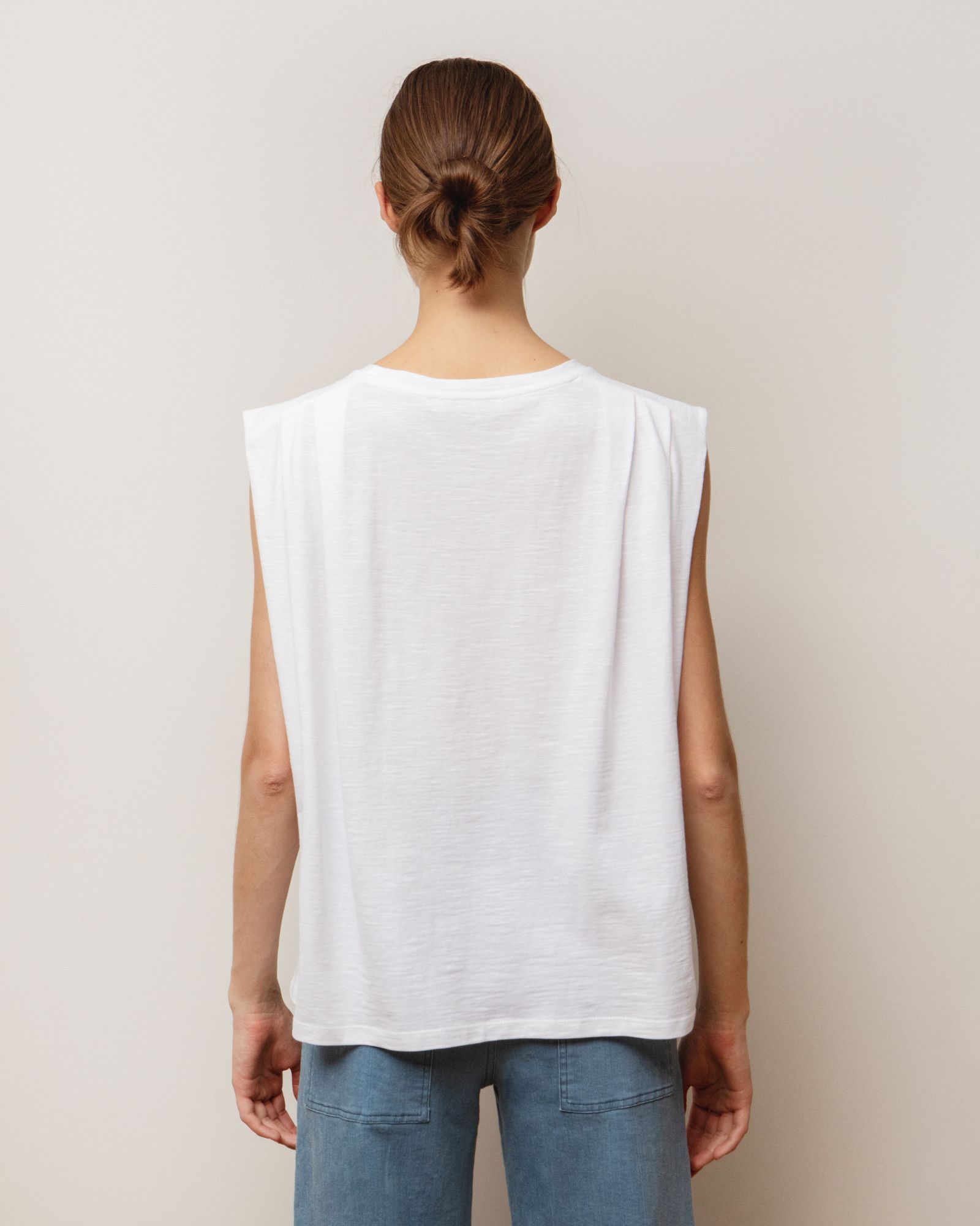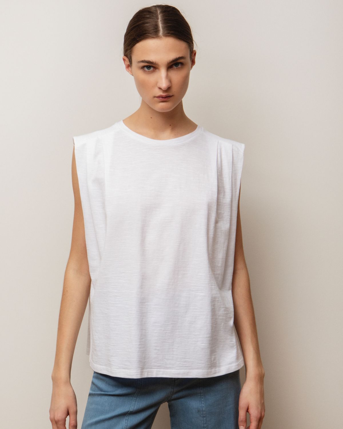 Αμάνικη μπλούζα με ελαφριά πιέτα στα μανίκια στο μπροστινό μέρος.