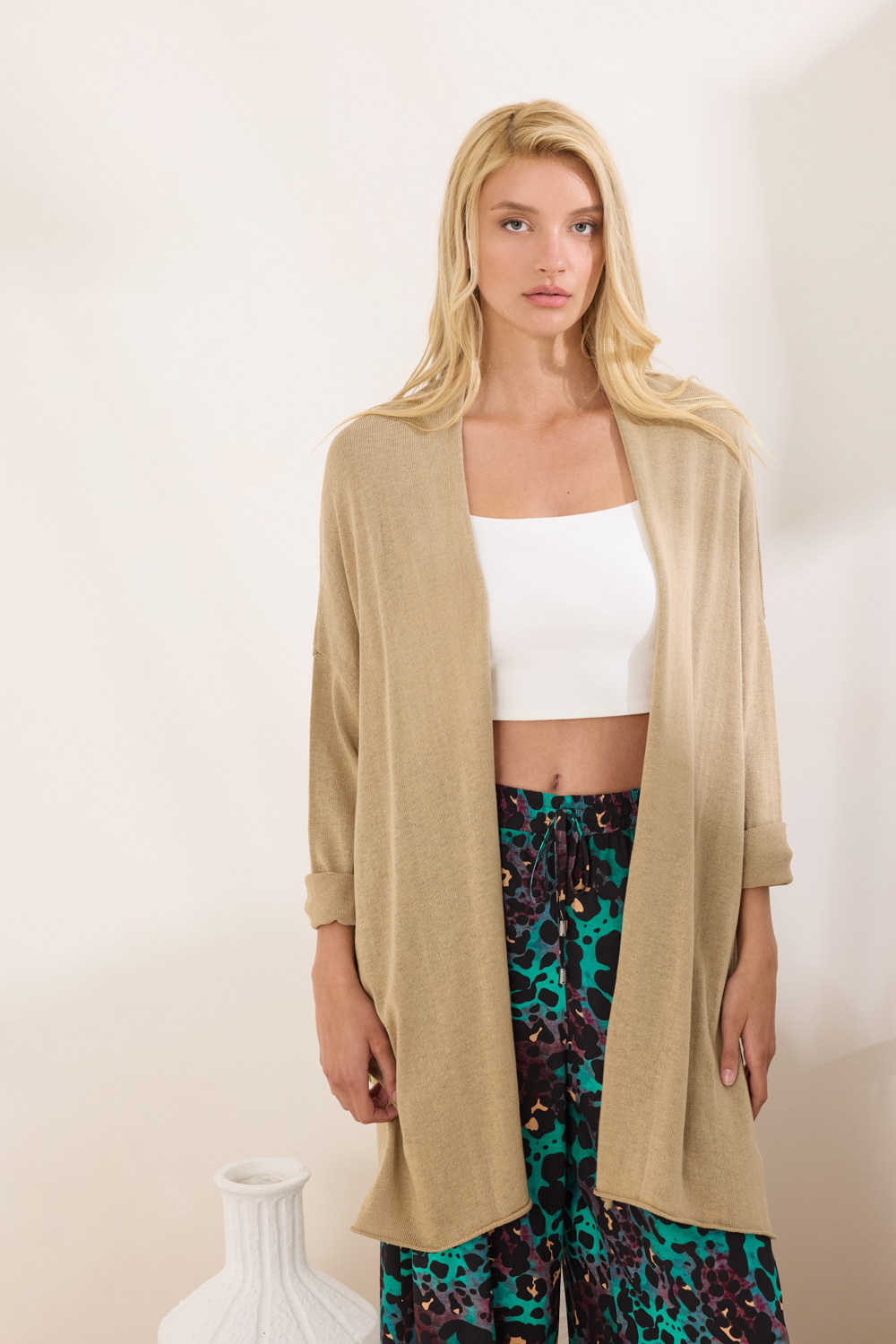 Ζακέτα πλεκτή με μακριά μανίκια και ανοιχτό μπροστινό μέρος.
