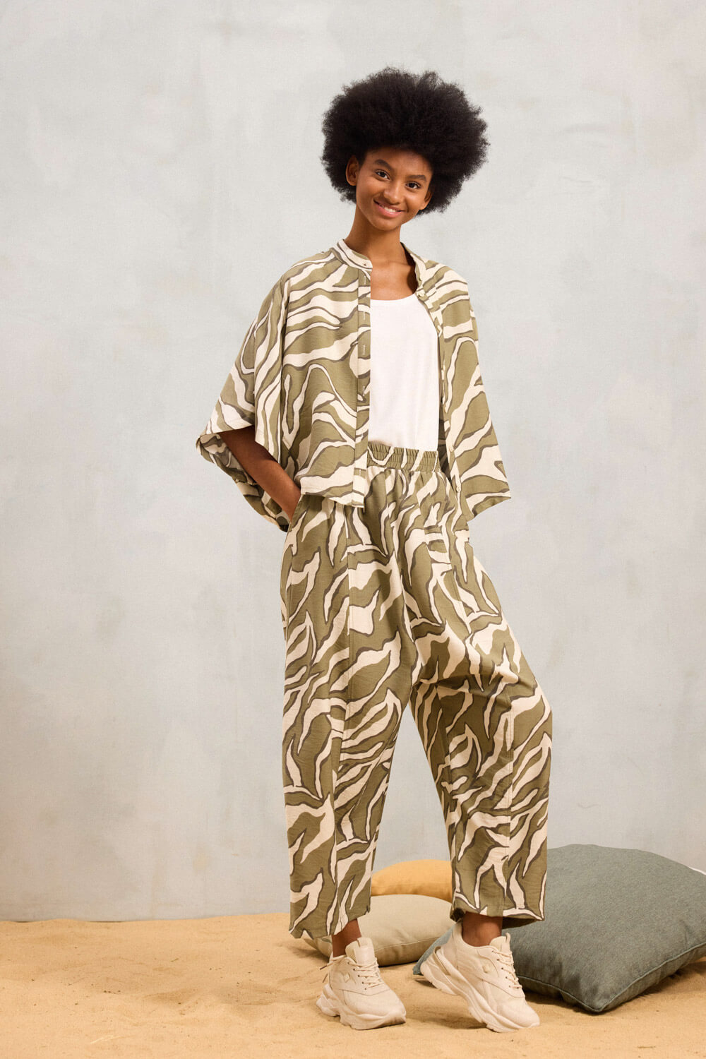 Πουκάμισο με mao γιακά και cropped γραμμή, oversized για μία χαλαρή και σύγχρονη εμφάνιση.Τα φαρδιά, χαμηλά ζαπονέ μανίκια προσδίδουν μία ανάλαφρη και κομψή αίσθηση, ενώ οι σχεδιαστικές ραφές μπροστά και πίσω προσθέτουν ενδιαφέρον και μοντέρνα στοιχεία.