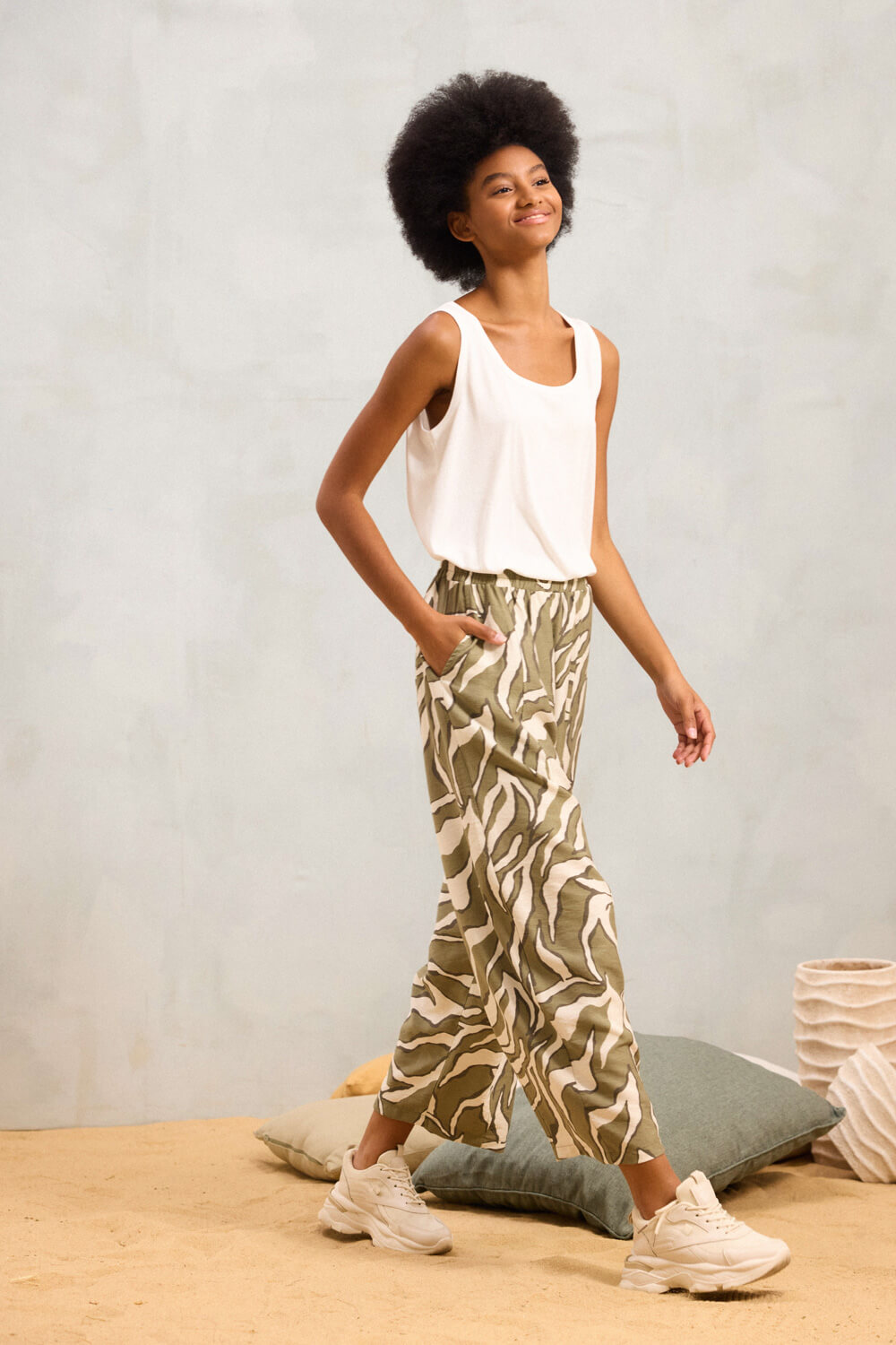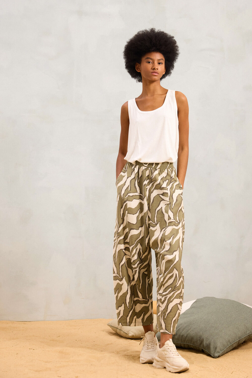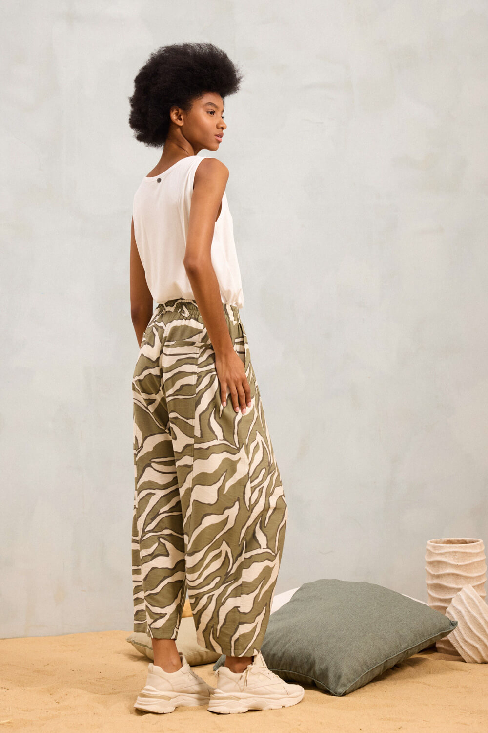 Παντελόνι με βαρύ καβάλο και λάστιχο στη μέση για άνετη εφαρμογή και μοντέρνα γραμμή.Διαθέτει κοφτές τσέπες μπροστά και ψεύτικες πατιλέτες πίσω, προσφέροντας μία πιο χαρακτηριστική και δυναμική εμφάνιση.Οι σχεδιαστικές ραφές μπροστά και πίσω προσθέτουν ενδιαφέρον στο σύνολο και το κάνουν ιδανικό για casual αλλά και stylish εμφανίσεις.